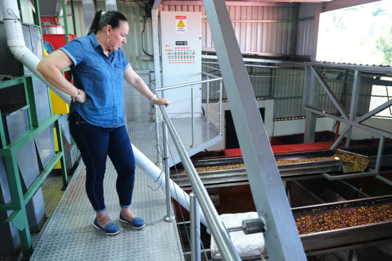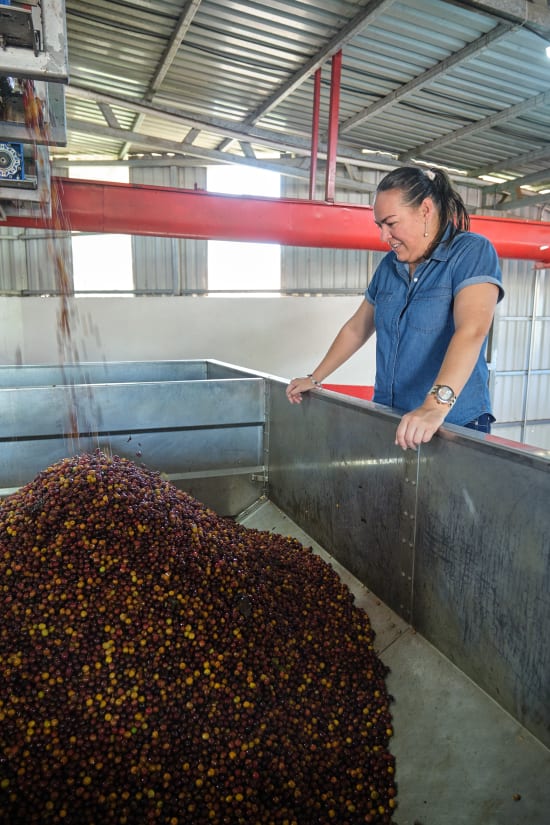 Dabei werden zuerst die reifsten, süßesten Kaffeekirschen ausgewählt und dann sehr langsam in einem Gewächshaus getrocknet. In der ersten Woche, der aeroben Fermentationsphase, liegen die Kirschen in einer dicken Schicht. Danach werden sie dünn ausgebreitet und trocknen für bis zu drei Wochen weiter. Während des gesamten Prozesses wird die Temperatur konstant kontrolliert, damit die natürlichen Fruchtzucker langsam kristallisieren können.